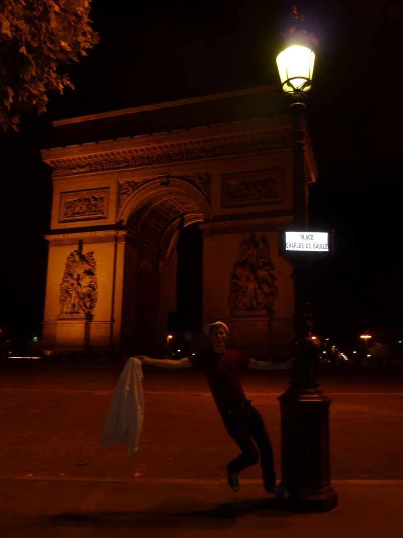 Well darn, we missed the last metro, AGAIN. But it was OK because it gave us the chance to check out the Arc de Triomphe, which was where the club was located! We went too close though, and got booted by security haha
