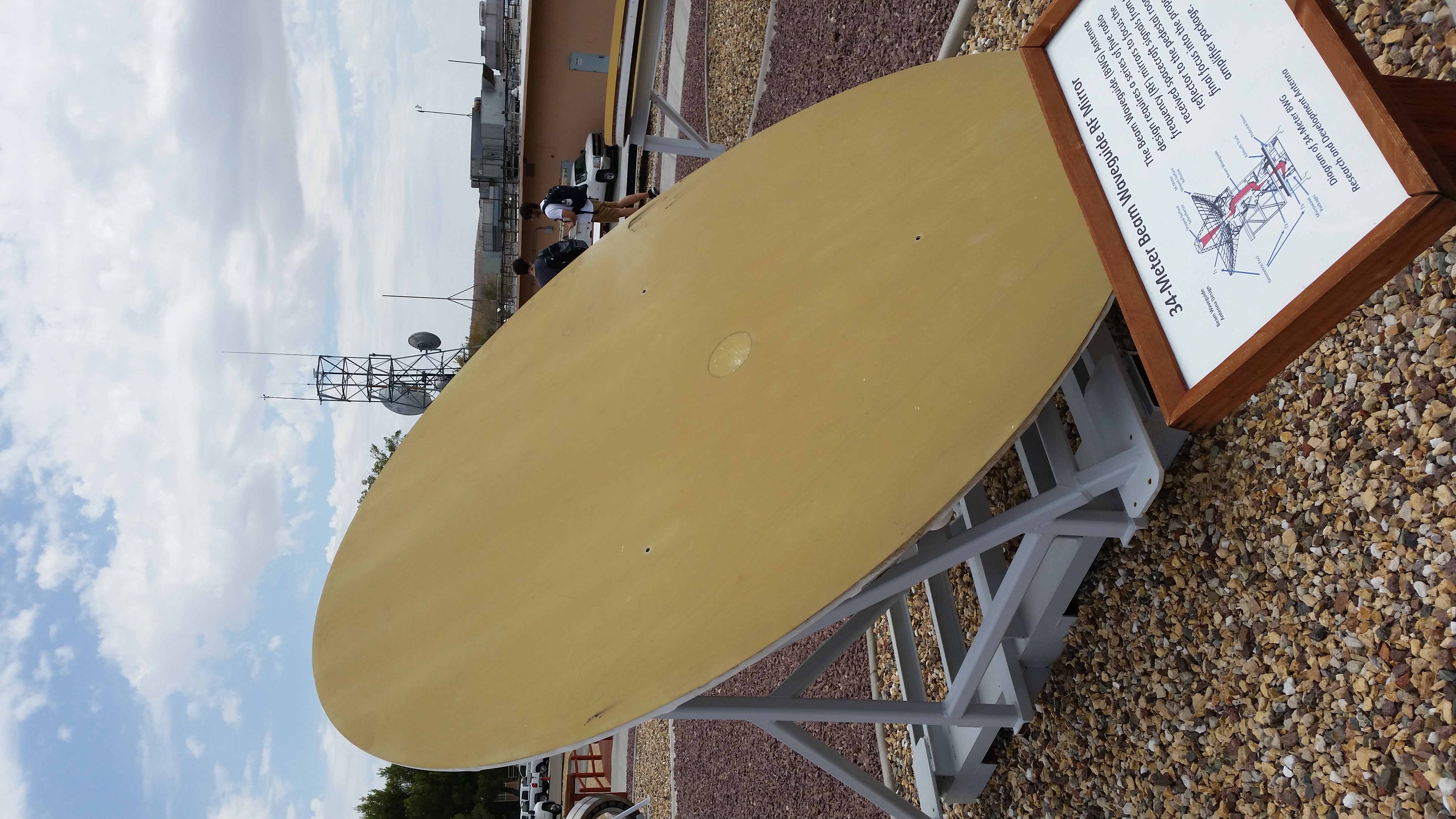So we began with the 2.5 hour drive out the Goldstone Deep Space Communications Complex, where we were then thoroughly ID’d, as one would expect. Goldstone is this huge radio communications facility where we communicate with some of our most cutting edge sattelites, such as Cassini (at Saturn, was communicating when we were visiting) and Voyager[2]. We saw some curious rock formations on the way there, and had some debate on whether they were/could be natural (I hope the picture is good)