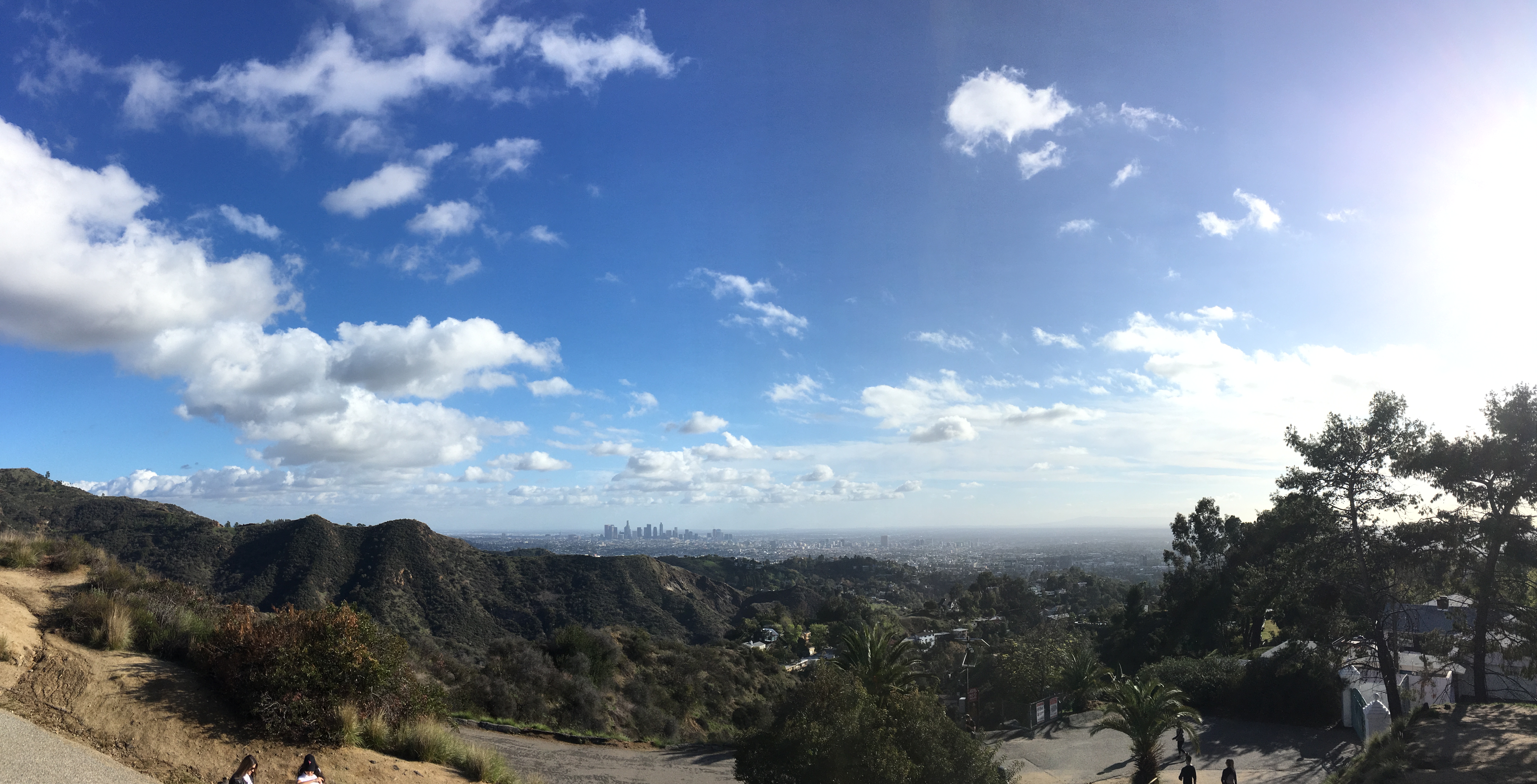 I did the Brush Canyon to Hollywood Sign Trail, which took about 3 hours. Most of it was on a wide, exposed path like the one in the photo below, and along the way, there were great views of downtown LA.