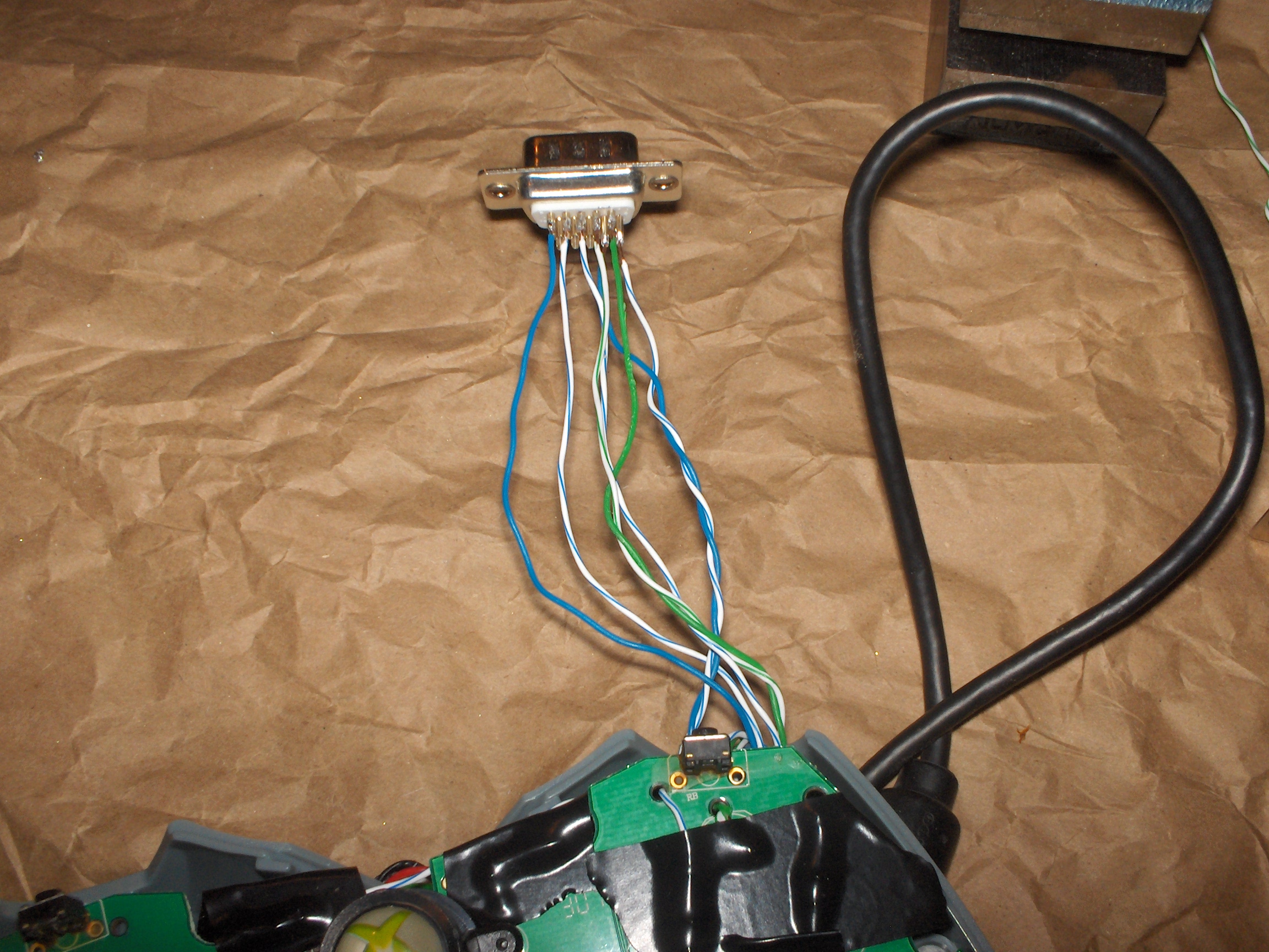 - Connect the wires to the DDR mat. In this case, that meant soldering to a male D-sub connector (HD15, same as a VGA cable), since our DDR mat wires are soldered neatly to a female D-sub connector.